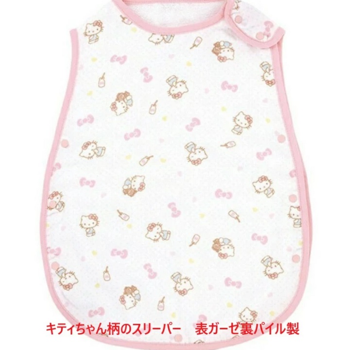一つあると便利なのがスリーパー お子様がお眠みになるとき着せておいてあげれば、動き回ってお布団からはみ出ても大丈夫。 肩やお腹が冷えなくて安心です。 お昼寝の時にも使えるし、お出かけの時や肌寒い時の羽織り物としても使える便利グッズです。 表は柔らかなガーゼ製 裏は吸水性に優れたパイル製の高級素材を使用。しっかりとしてて柔らかなのが特徴 お洗濯するたびにふわっと仕上がり、柔らかさが増していきます。 触ったときに判る品質の差をお試しください。お値段だけのことはある逸品です 人気キャラのキティちゃん柄が可愛いですね。 サイズ=38cmx53cm 綿100% 表ガーゼ 裏パイル |