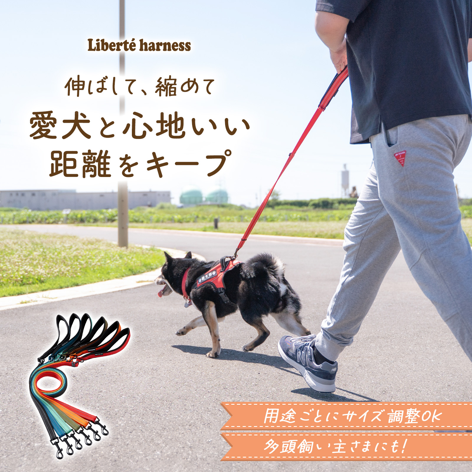 犬 リード 1本で110〜180cmまで長さ調節 反射材付き 小型犬 中型犬 大型犬対応 40kgまで クッション付きハンドル Liberte harness