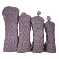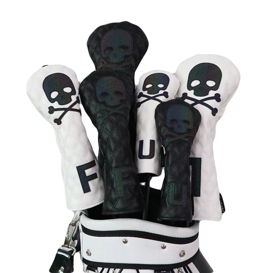 ゴルフヘッドカバー ドライバー/ウッド FW /ユーティリティ UT用 防水仕様 変換ダグ付き 4点セット スカル 黒 白 送料無料 自由に組み合わせ