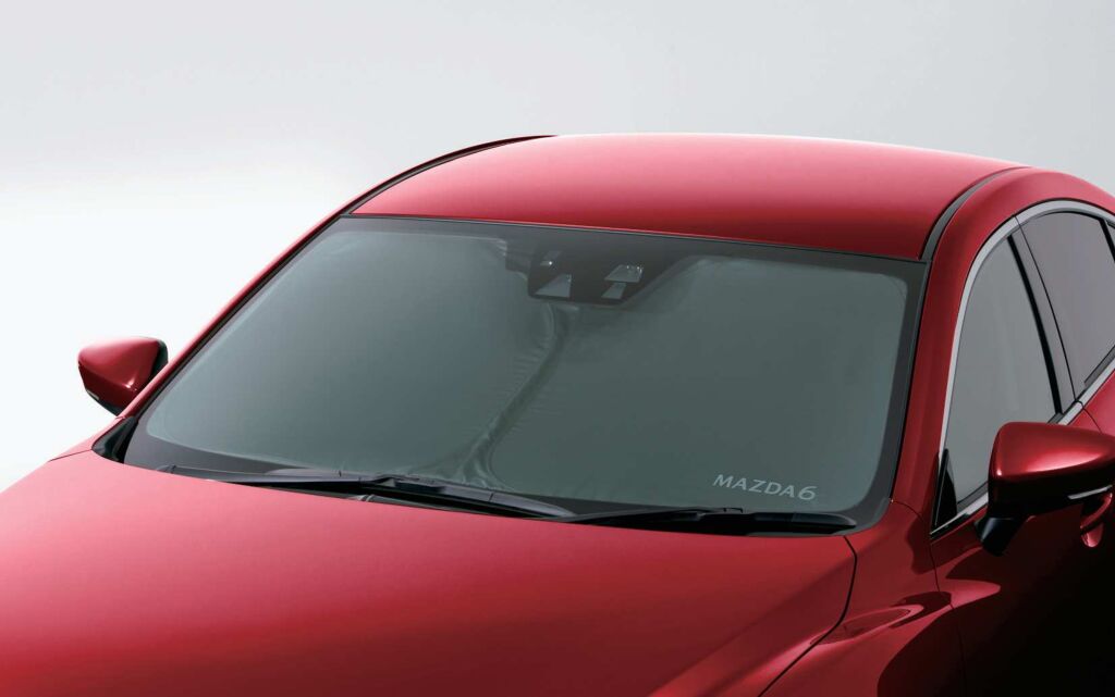 MAZDA6専用形状でフロントウィンドーにピッタリフィット。素材や色、収納用ソフトケースにもこだわった質感の高いサンシェードです。MAZDA6ロゴ入り。