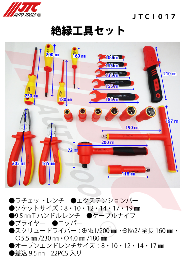 JTCオートツールズ 絶縁工具セット JTCI017 国際規格:IEC60900:2004規格適合品