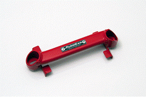 エンジンルームに遊び心を。AutoExe製ストラットタワーバーをイメージにデザインされたワンピーススチール製。鮮やかなレッドカラーやロゴプレートに至るまで忠実に再現した。