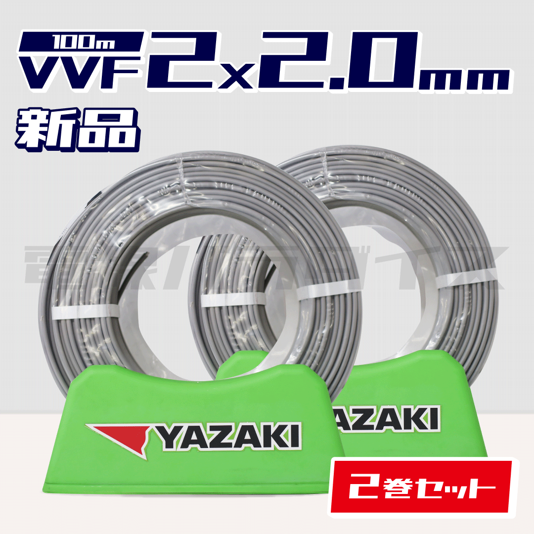 【最安値】☆2巻セット☆ 矢崎電線 VVF 2.0mm×2芯 100m巻(灰色600V)電線パラダイスは即日発送