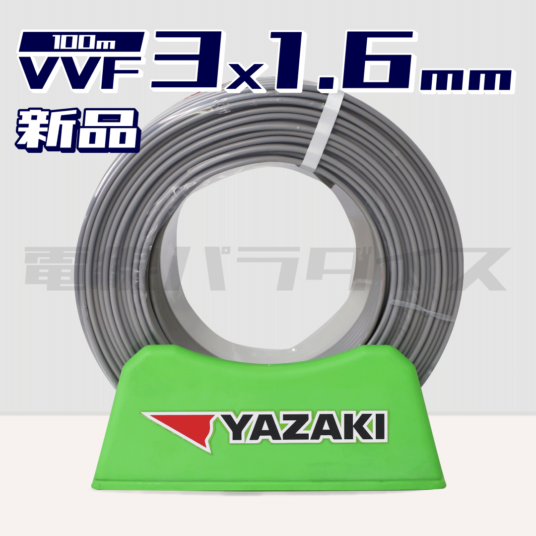 【最安値】矢崎電線 VVF 1.6mm×3芯 100m巻(灰色600V)電線パラダイスは即日発送