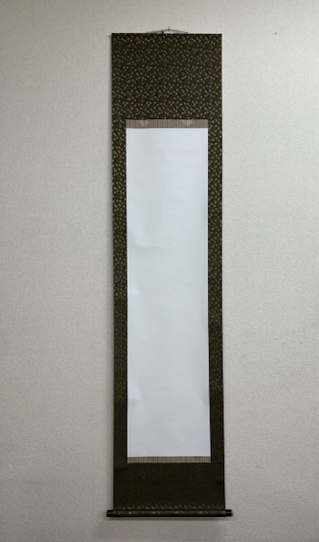 無地軸 白抜き掛軸 【半切】 丸表装 HM-1-5 焦げ茶どんぐり柄 白紙 画仙紙 和紙 書道用品 書道 日本画 水墨画 展示 展覧会