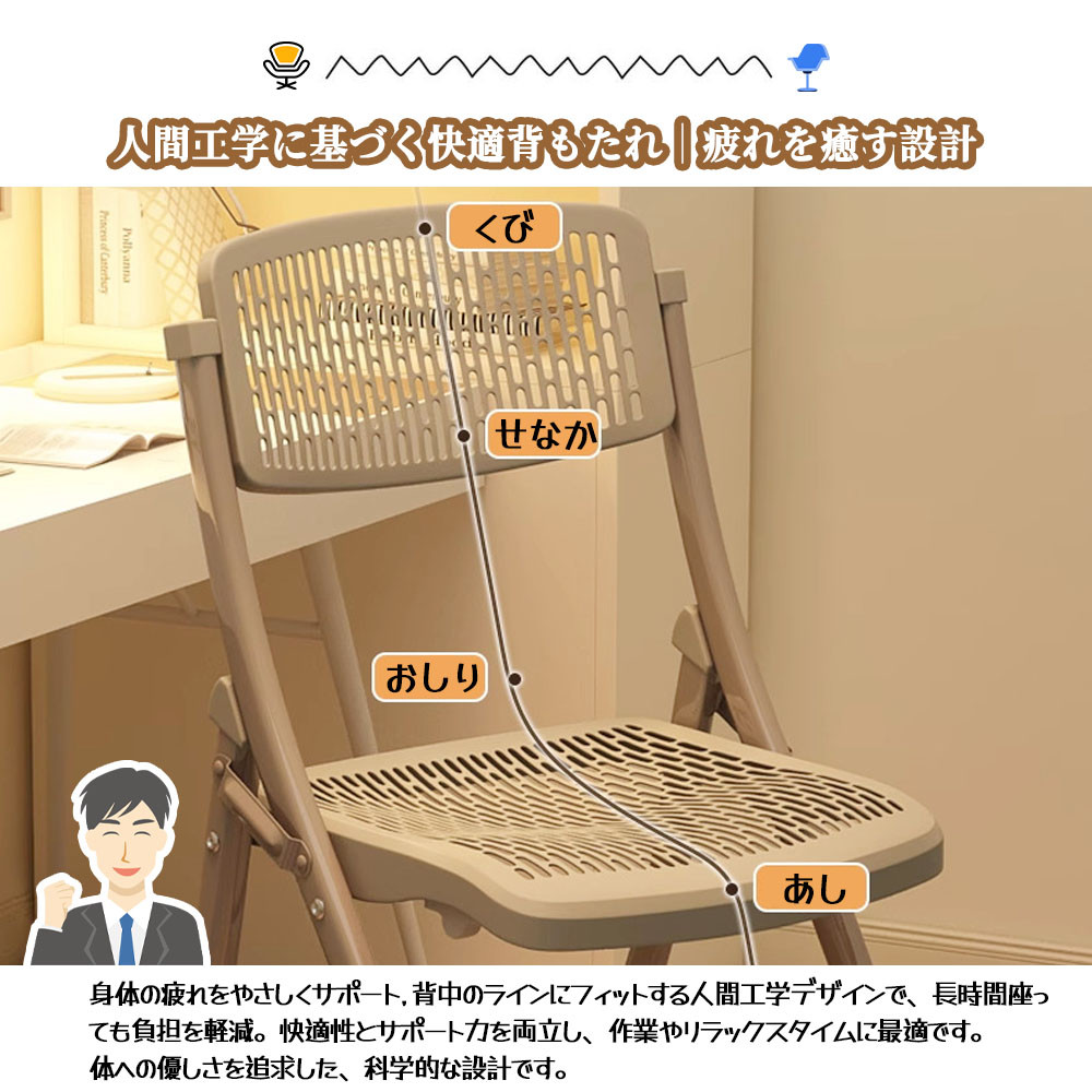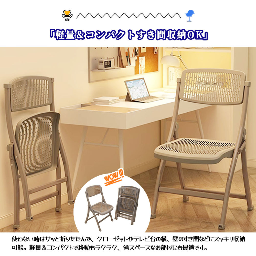 軽量折りたたみ設計:椅子は折りたたみ構造を採用しており、持ち運びや収納が簡単で、省スペースです。家庭やオフィス、アウトドアなど様々なシーンに適しています。
