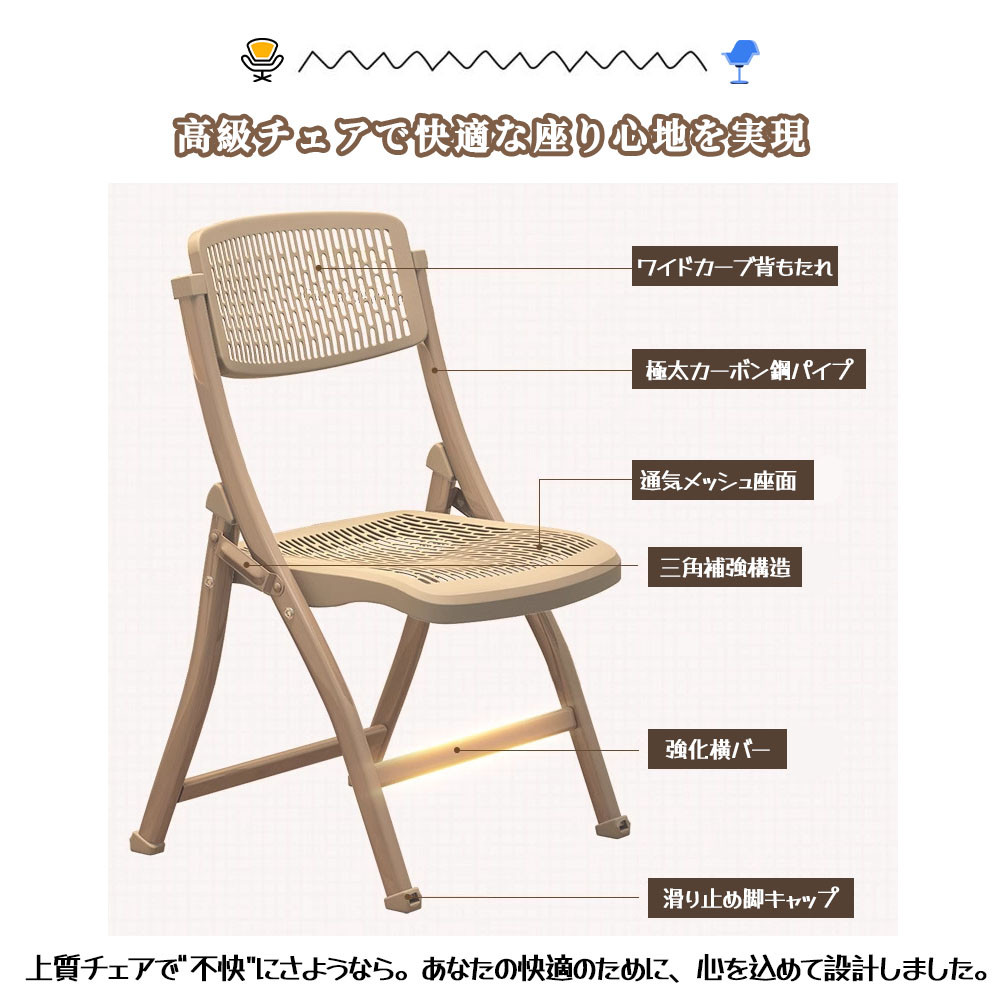 折りたたみ椅子 折りたたみチェア 背もたれ付 軽量 コンパクト 通気 防水 軽量 滑り止め付き お手入れ簡単 パイプ椅子 学習チェア 椅子 学校 事務所 家庭用 爆買