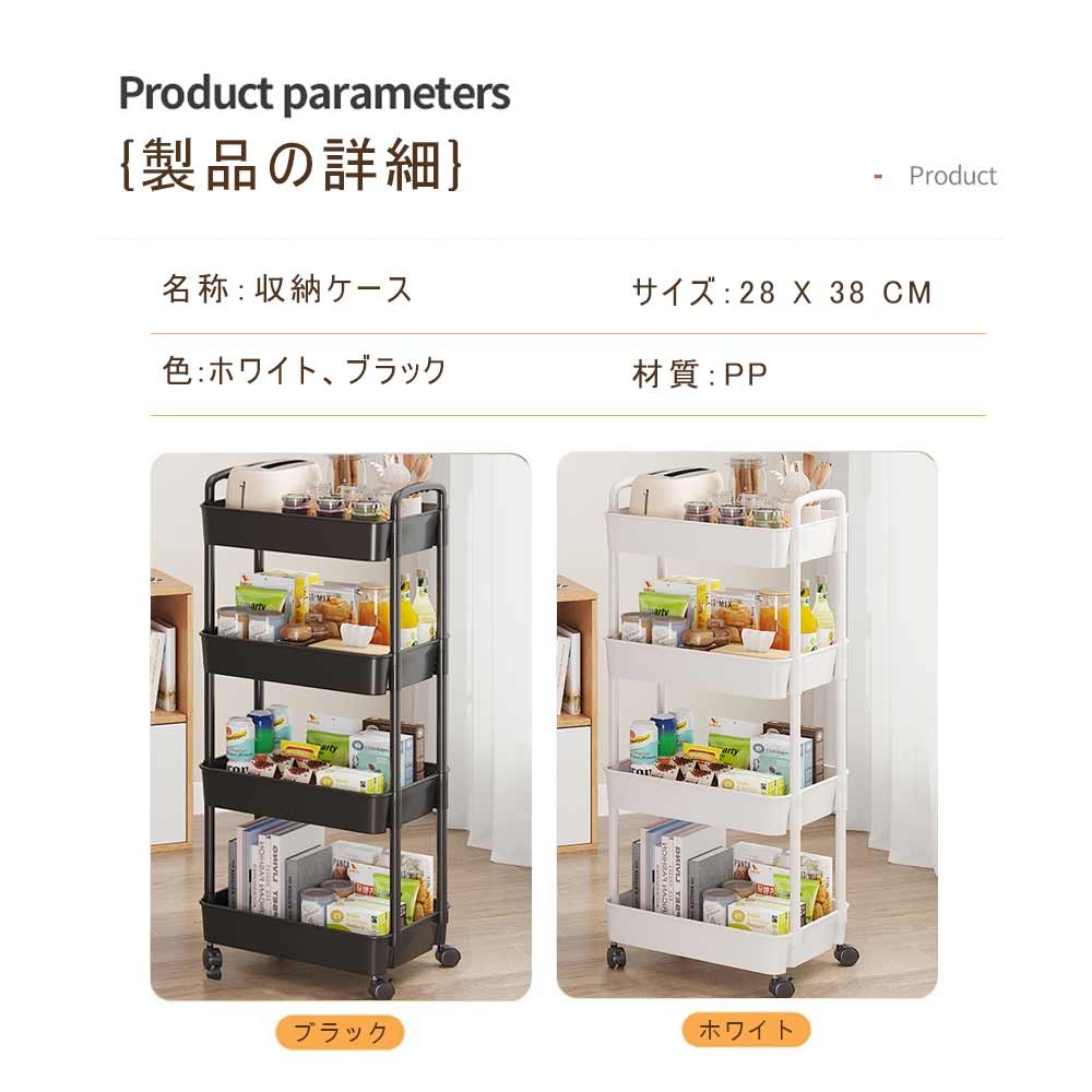 キッチンワゴン キャスター付き 4段 ラック 天板付き キッチン収納棚 ベビーワゴン 収納ケース 収納ボックス インテリア プラスチック 隙間収納 整理 爆買