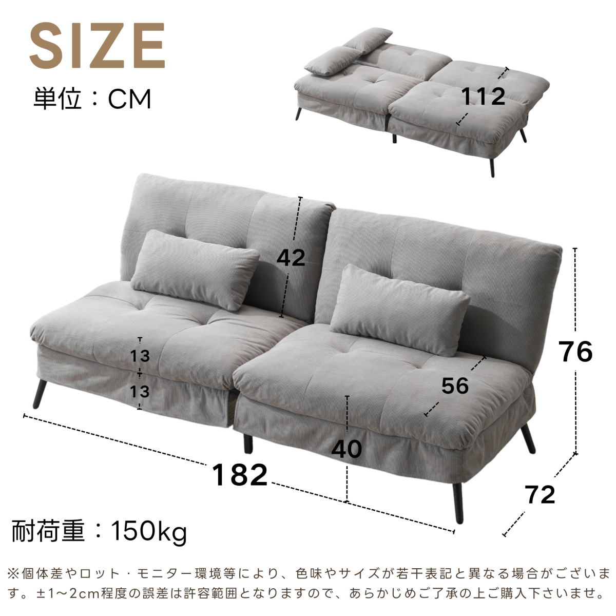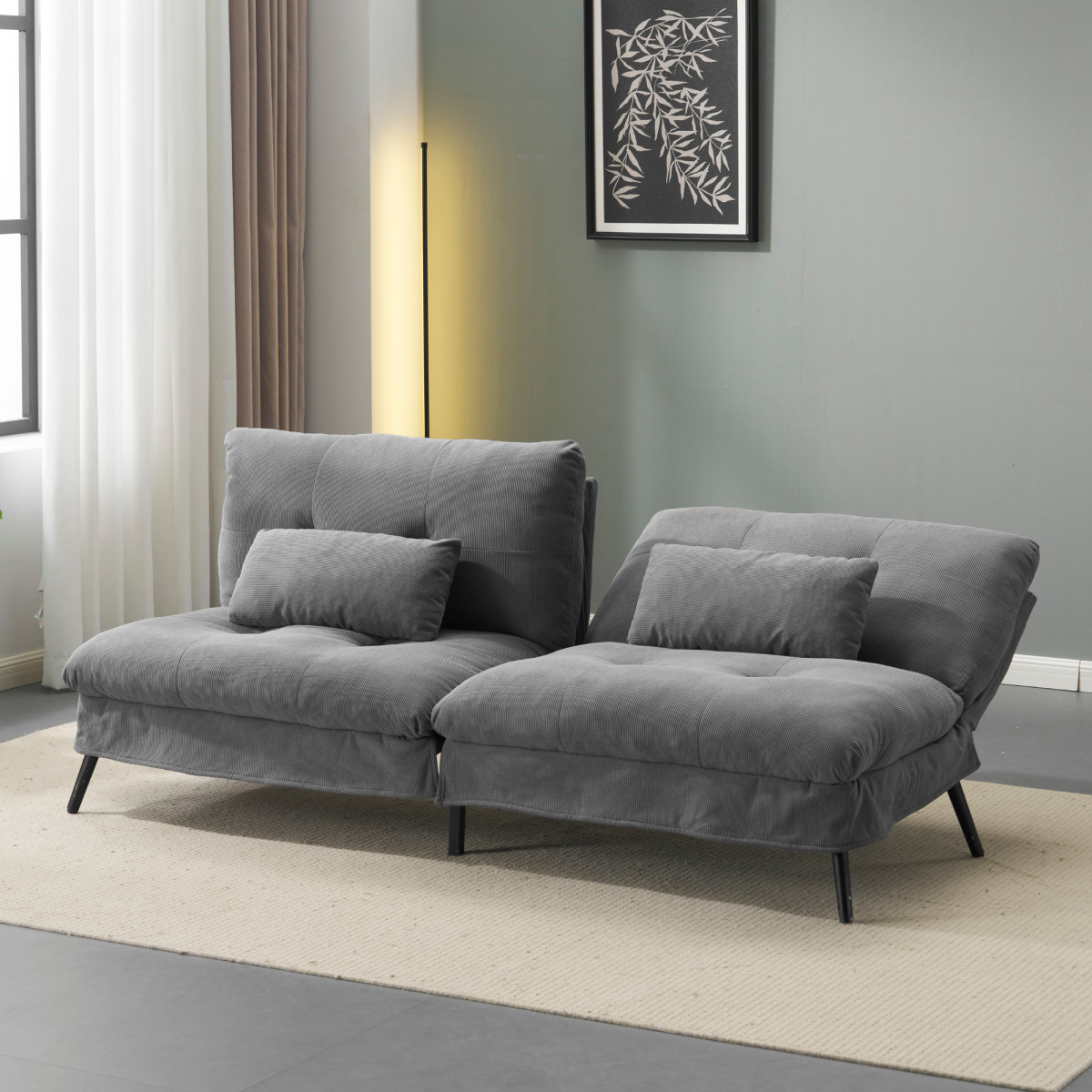 【脚の取り外しで 2 つの小ソファに変形】