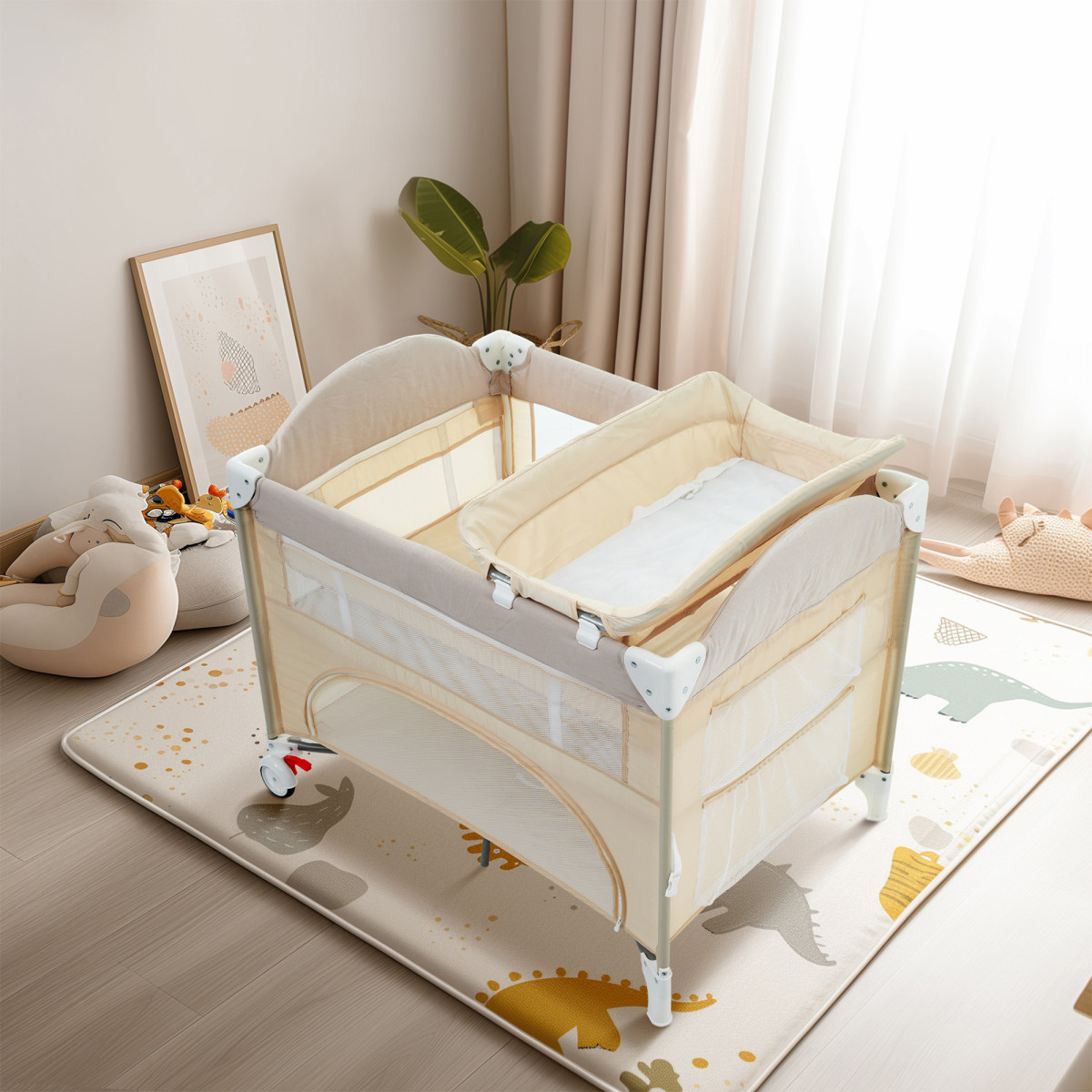 プレイヤード 折りたたみ ベビーサークル お昼寝マット 高度調節 おむつ替えテーブル付 キャリーバッグ付 マットレス付 添い寝ベッド 出産祝い プレゼント