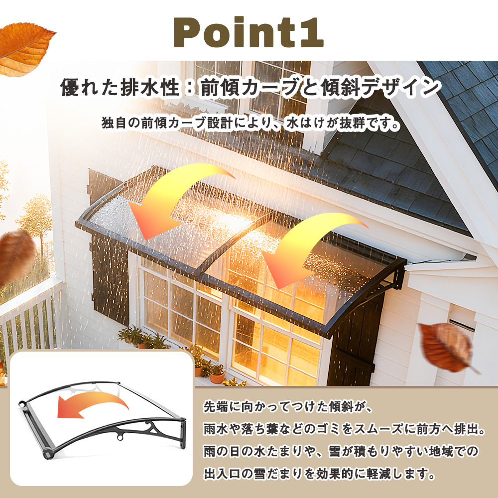 【優れた排水性:前傾カーブと傾斜デザイン】