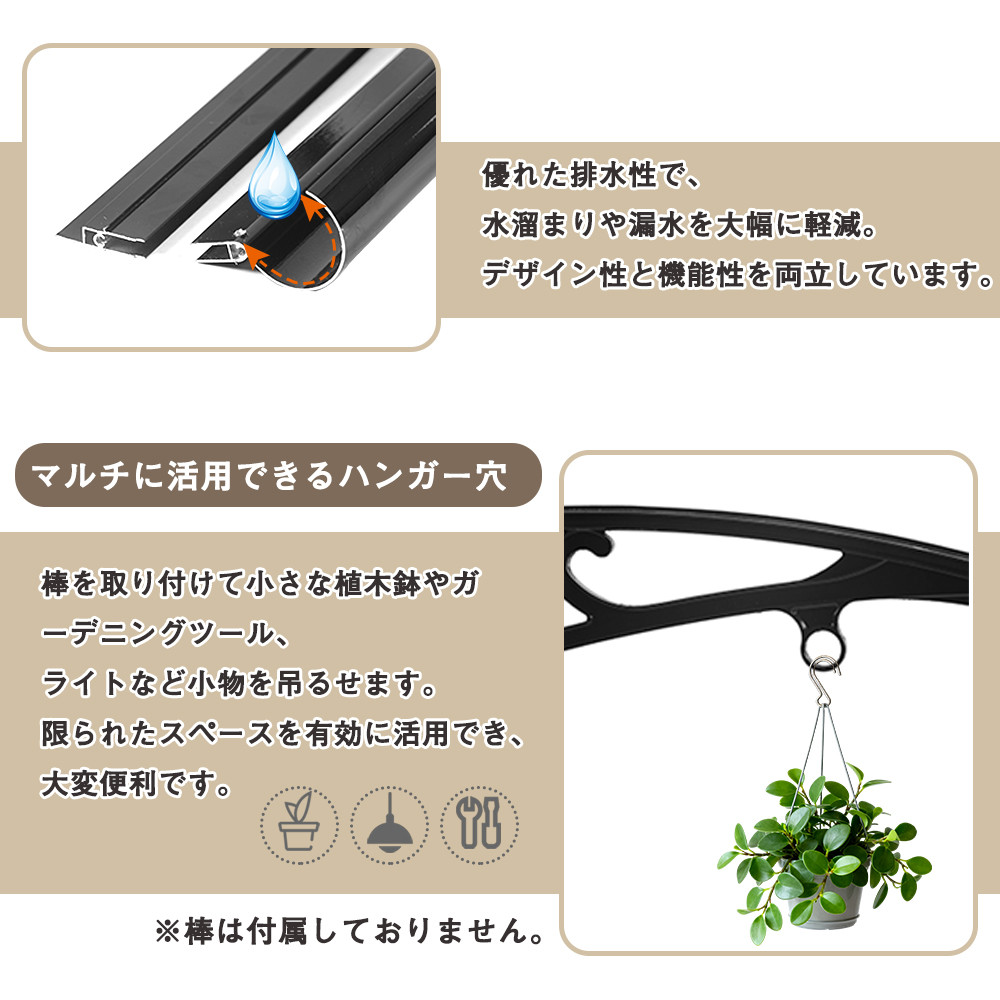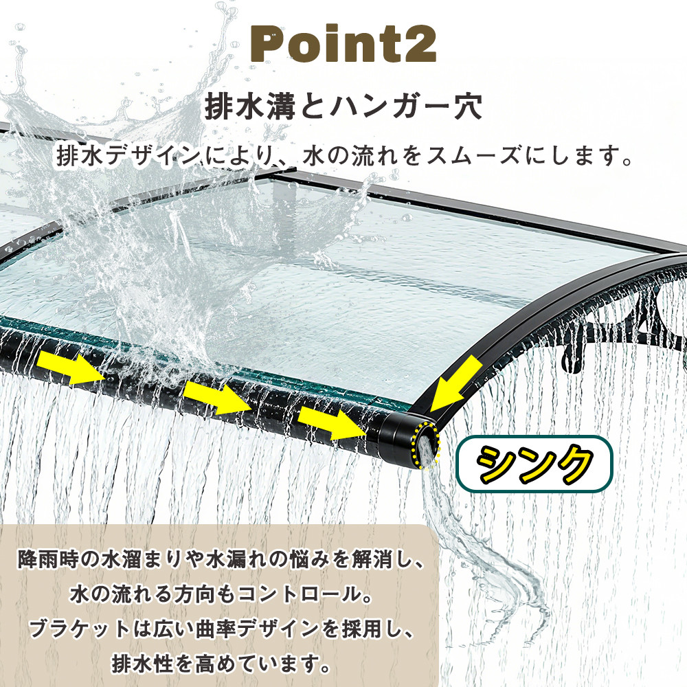 サイド両面の排水デザインにより、水の流れをスムーズにします。降雨時の水溜まりや水漏れの悩みを解消し、水の流れる方向もコントロール。ブラケットは広い曲率デザインを採用し、排水性を高めています。
