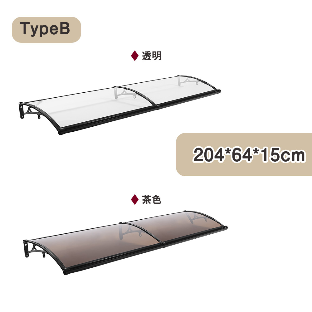 屋根庇 ひさし 雪対策 雪よけ 雨よけ 64*204cm 組立簡単 テラス 玄関 住宅用 パティオ日除け 雨雪パネルをミュート ブラケット付き サンシェッター 梅雨対策