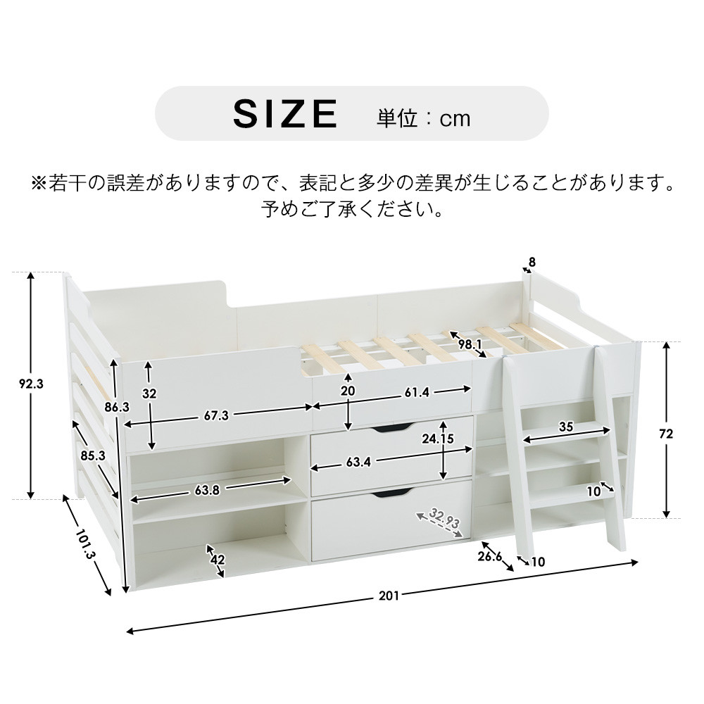 また、頑丈な木材を使って、揺れにくい構造なので、ベッド面の耐荷重は150kg。