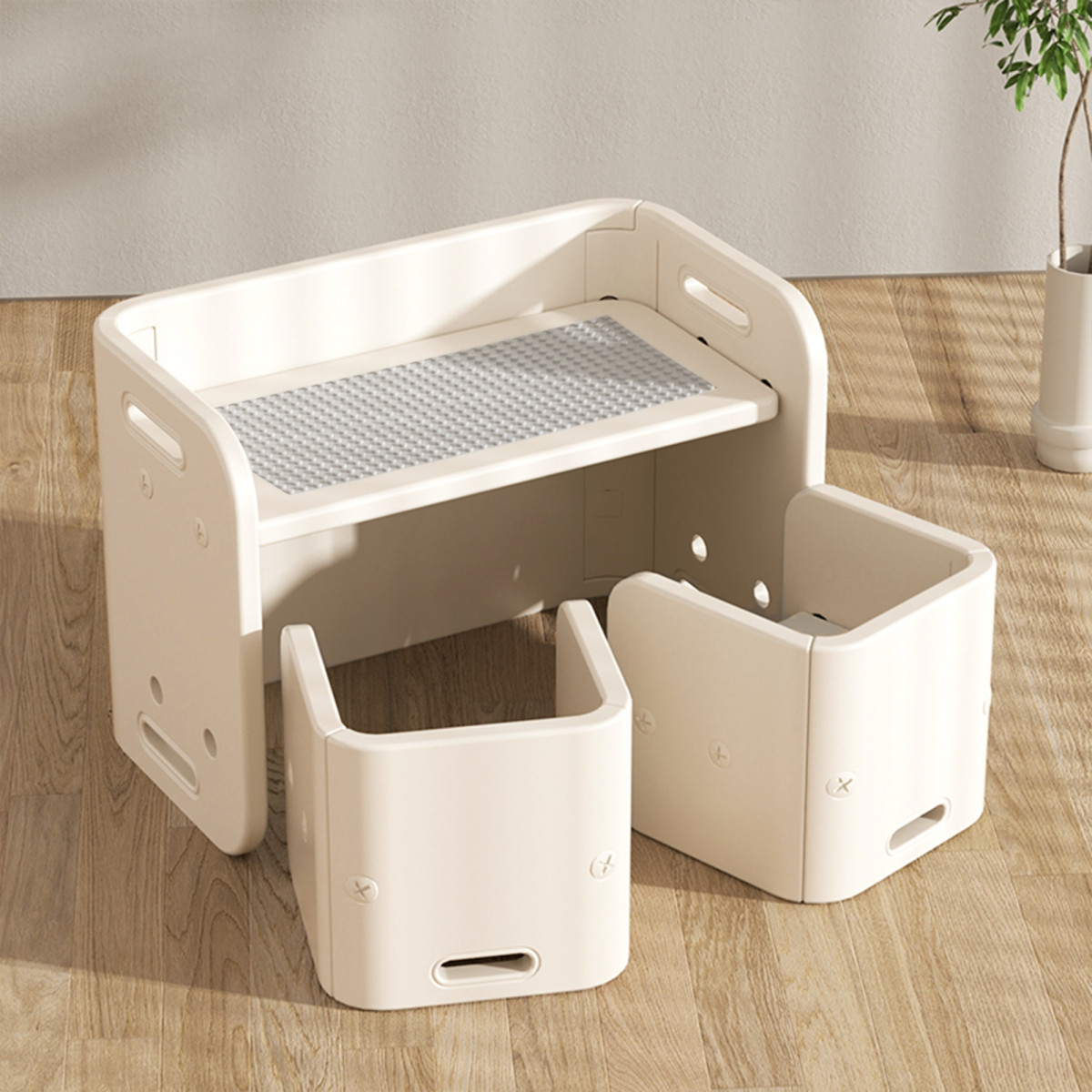 内容物:デスク×1、チェア×2、磁力のあるホワイトボードシート×1枚、 ブロック基礎板×1枚