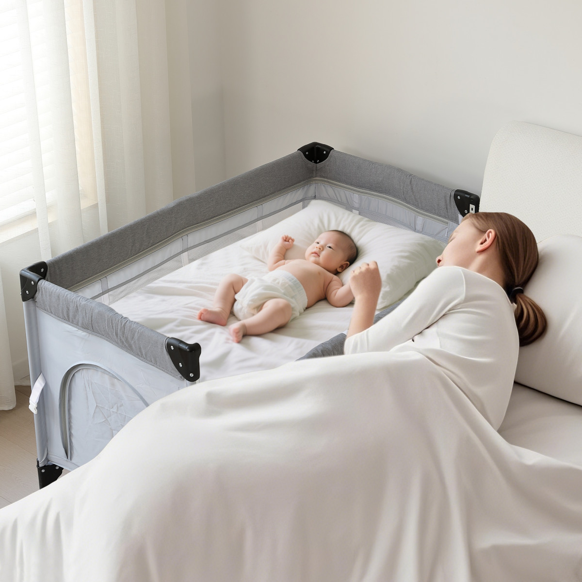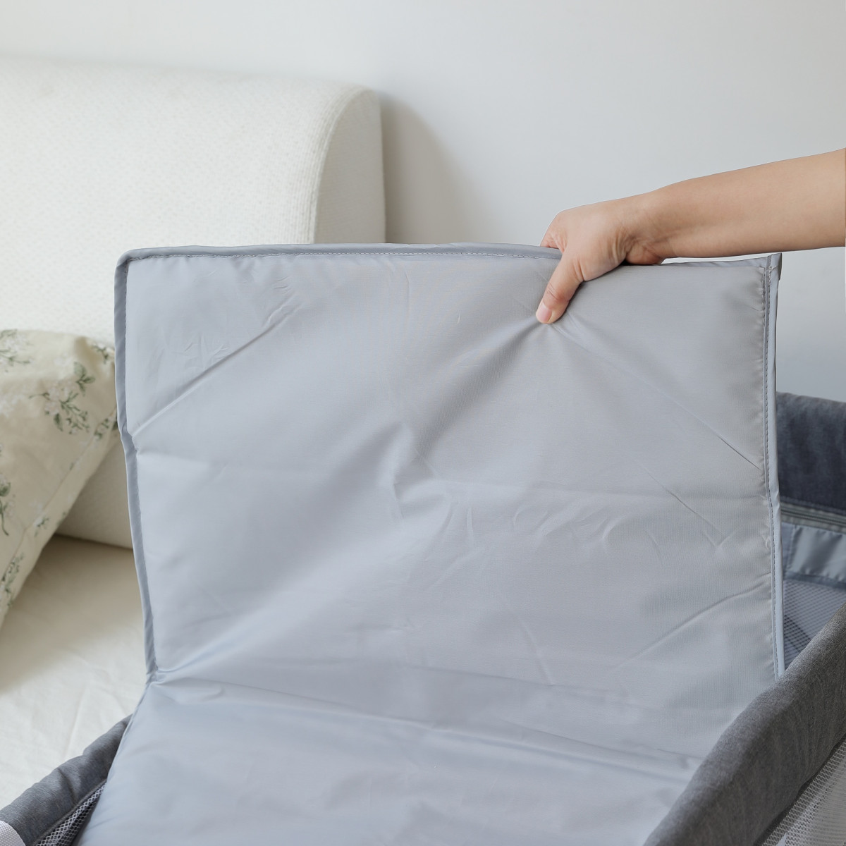 お子様の移動式ベビールーム。どこに行っても寝る可能です。収納袋が付属するのでご自宅での収納、出かけなどの持ち運びもらくらく!