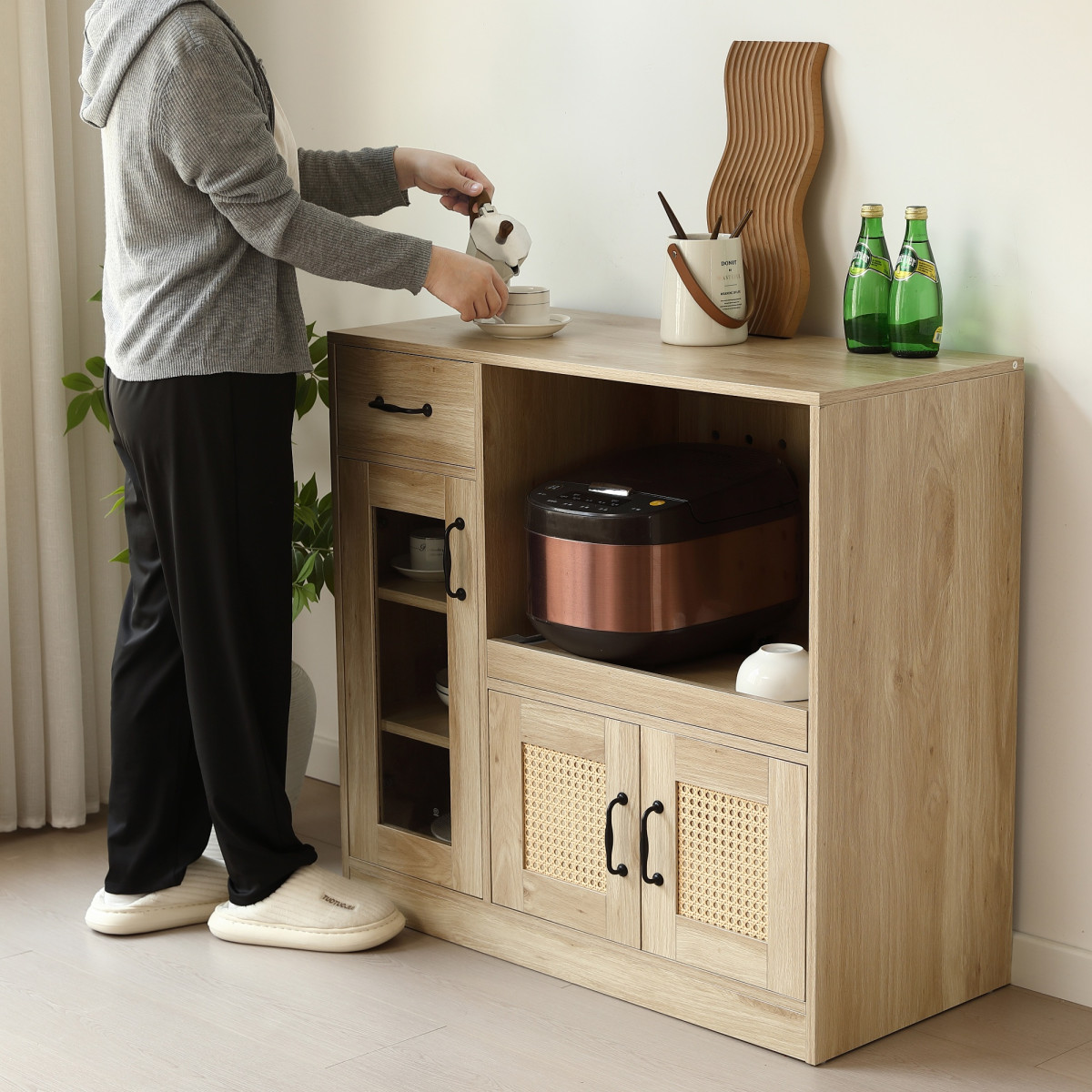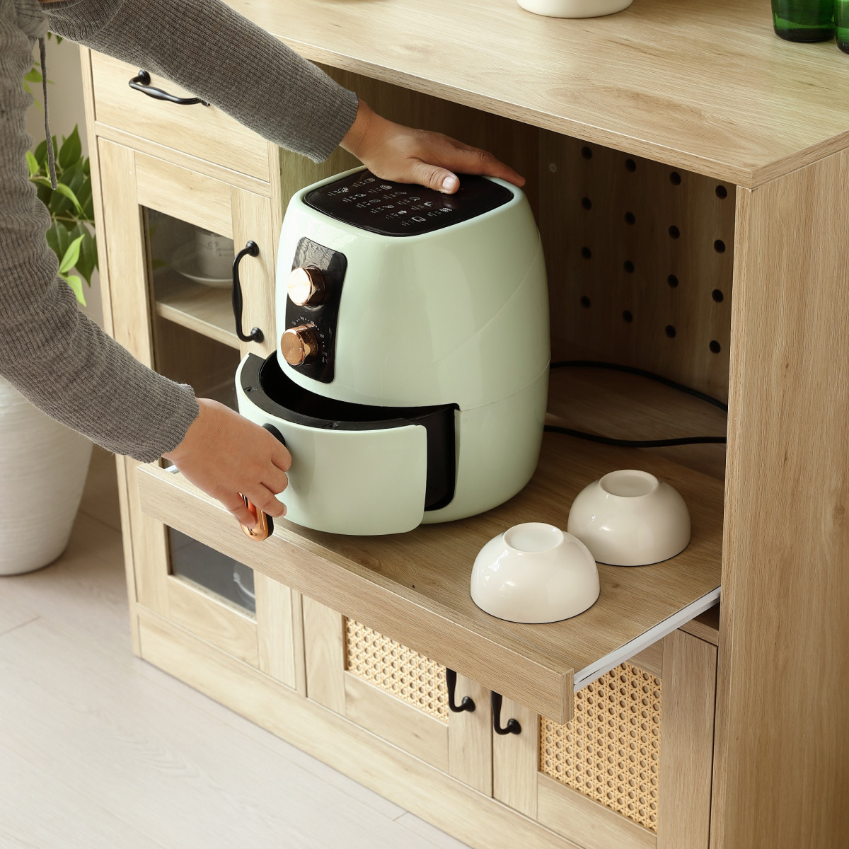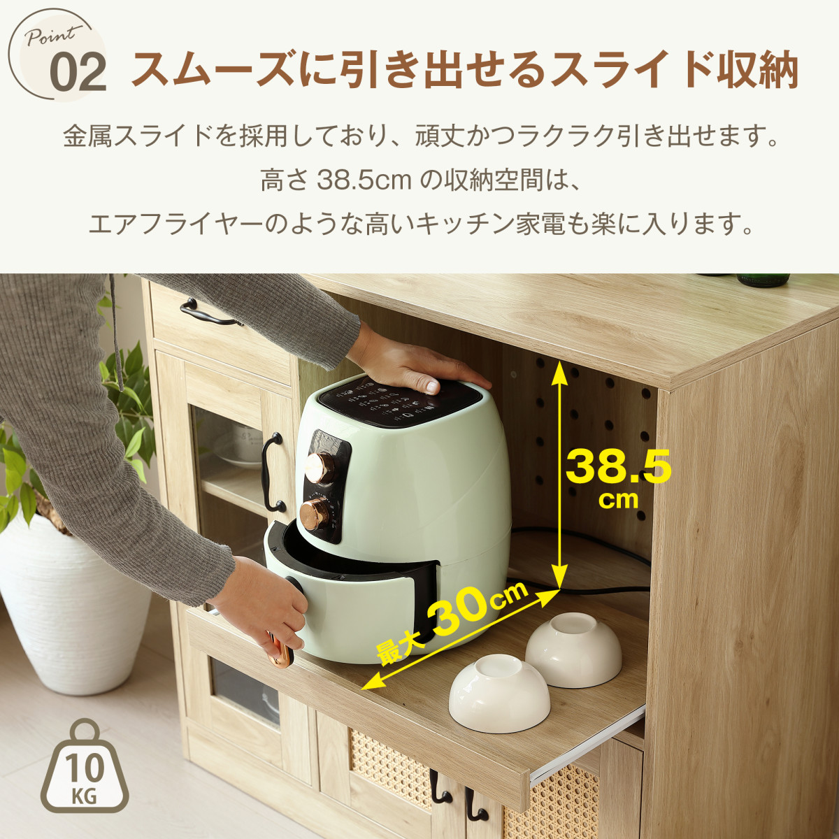 ラタン調のデザインを採用し、ナチュラルな雰囲気を演出。