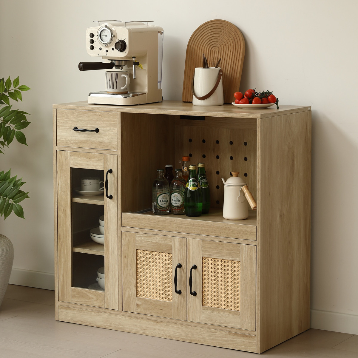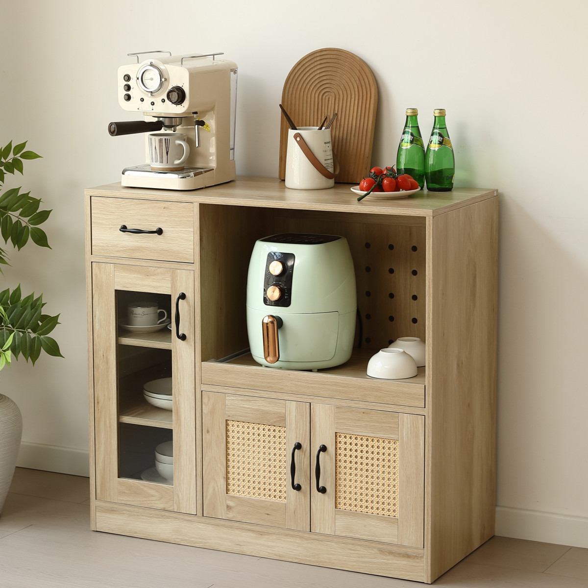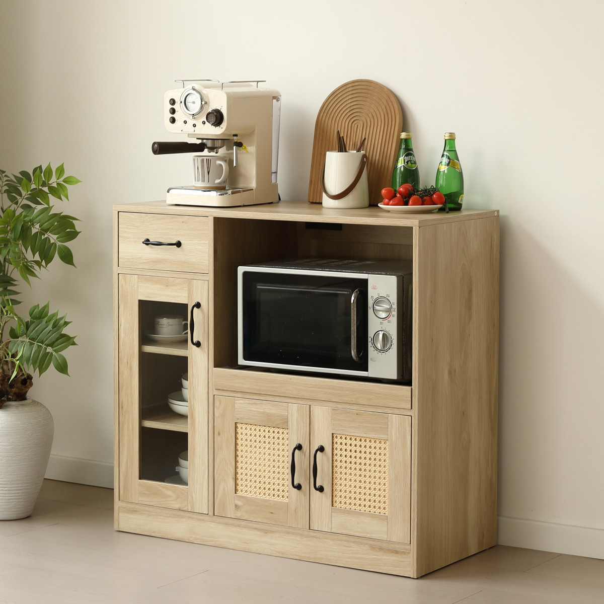ラタン調のデザインを採用し、ナチュラルな雰囲気を演出。