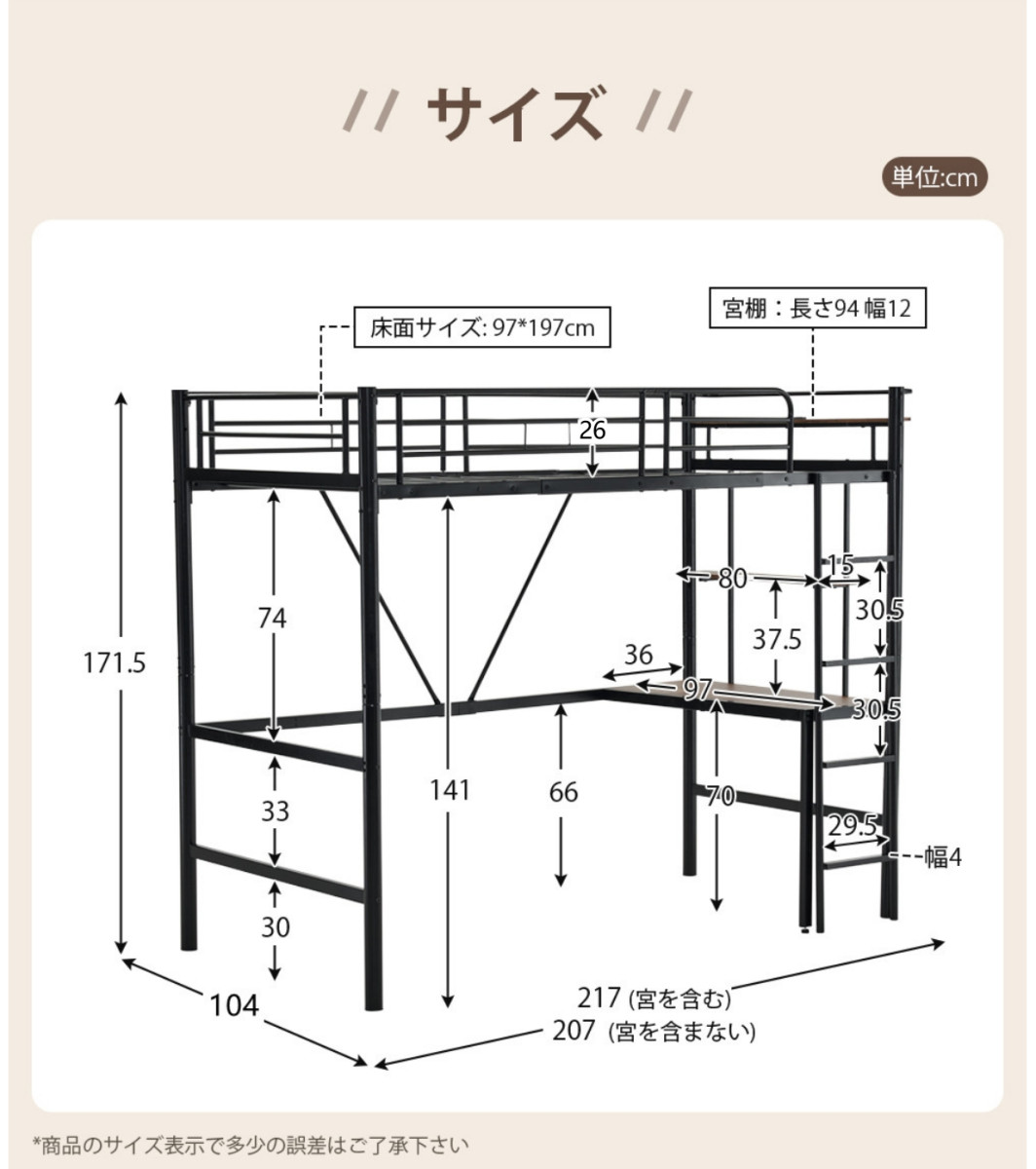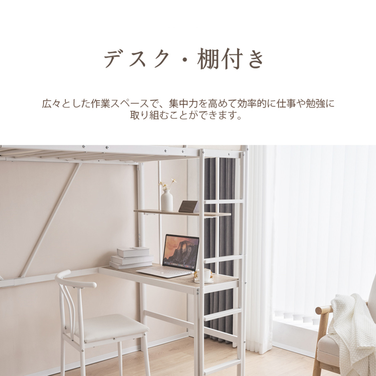 ベッド下に机も付きで、快適な眠りも勉強も叶える一台です。