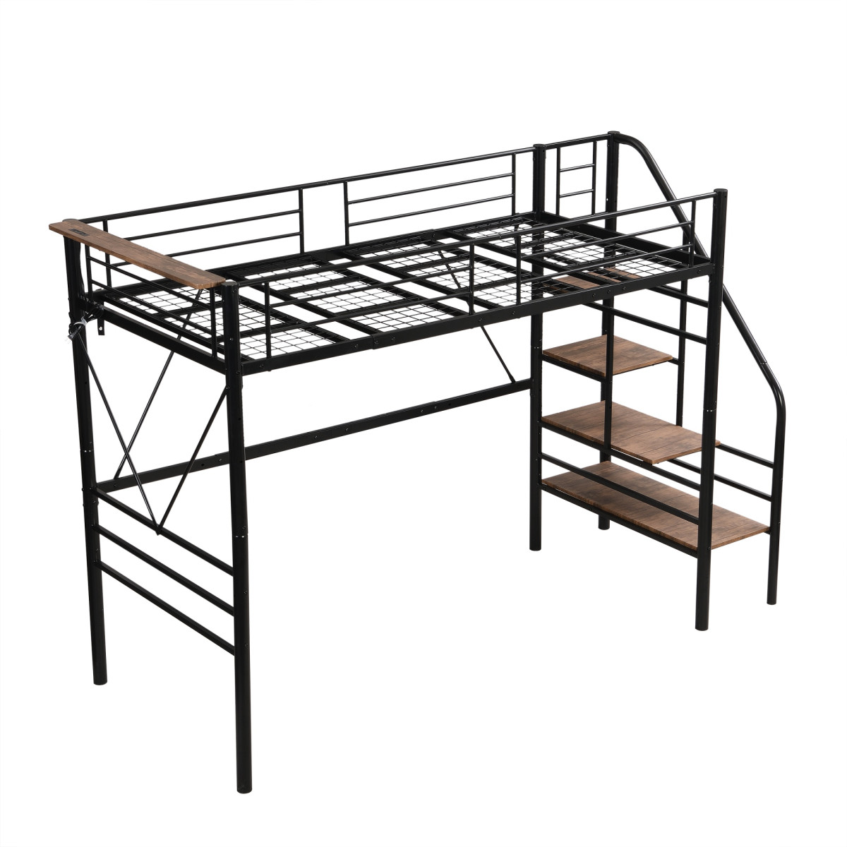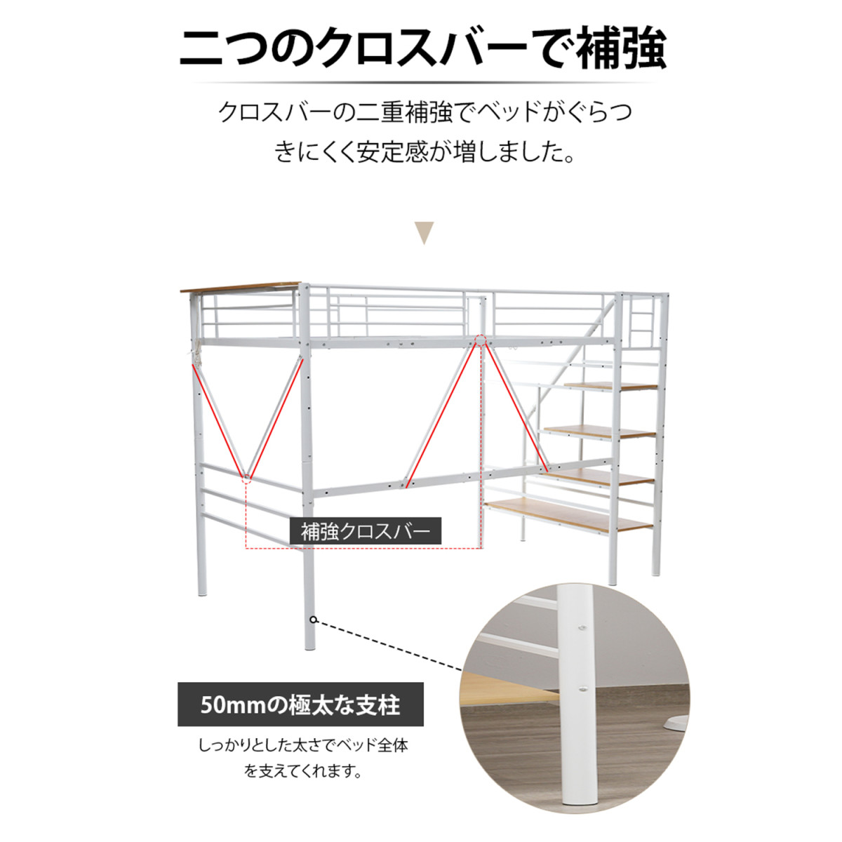 ロフトベッド ハイタイプ 階段 ハイベッド S シングル 子供 大人用 シングル パイプベッド コンセント宮付き システムベッド ロフト システム パイプ床板 爆買