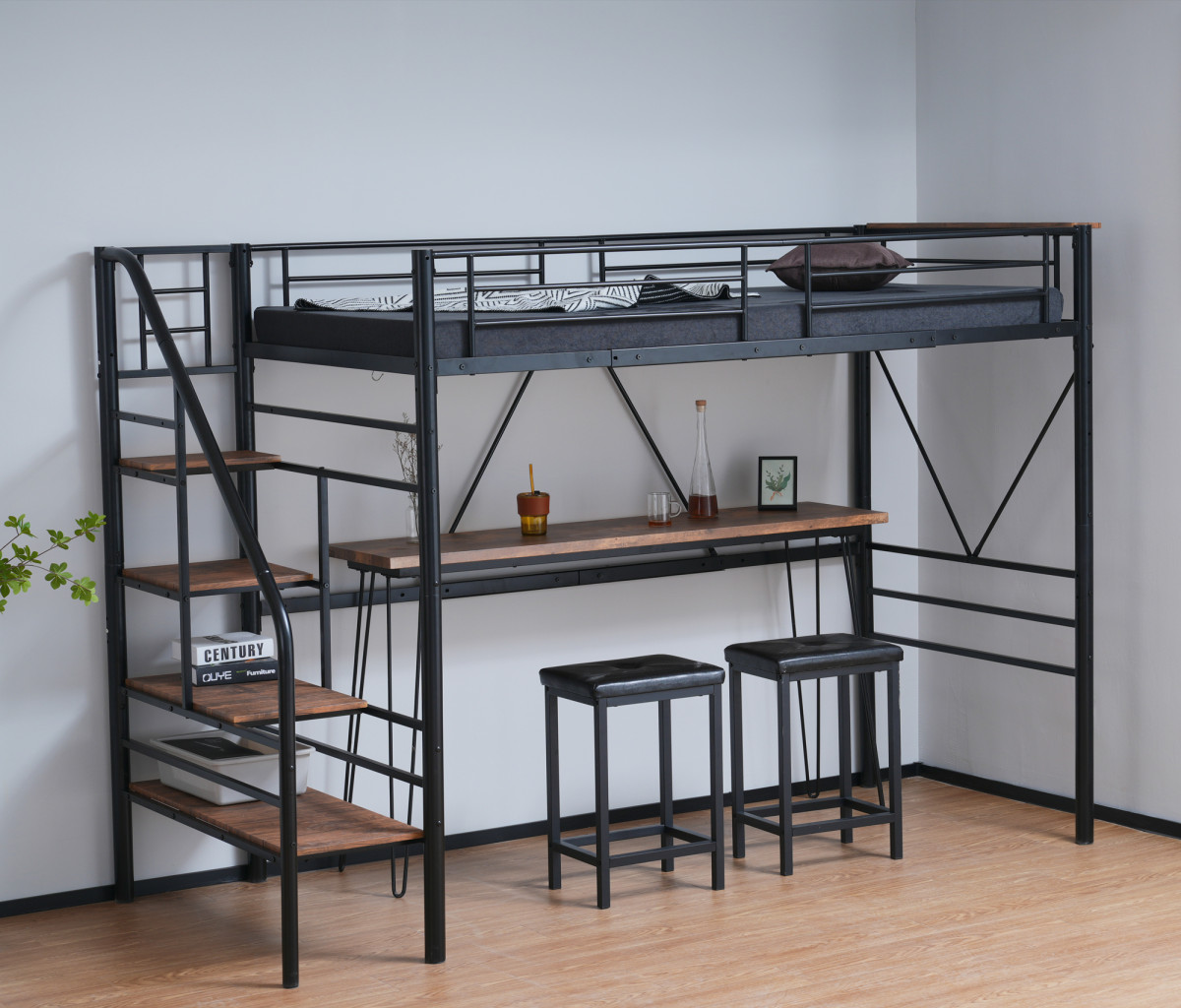 【ロフトベッドでお部屋を自由にデザイン】 ロフトベッドで限りあるスペースを賢く使って、お部屋をすっきりします。安全に昇り降りできる階段は収納棚にもなり、お部屋の限られたスペースを最大限に活用。 勉強スタイル、仕事スタイル、リビングスタイル、全部楽しめます!