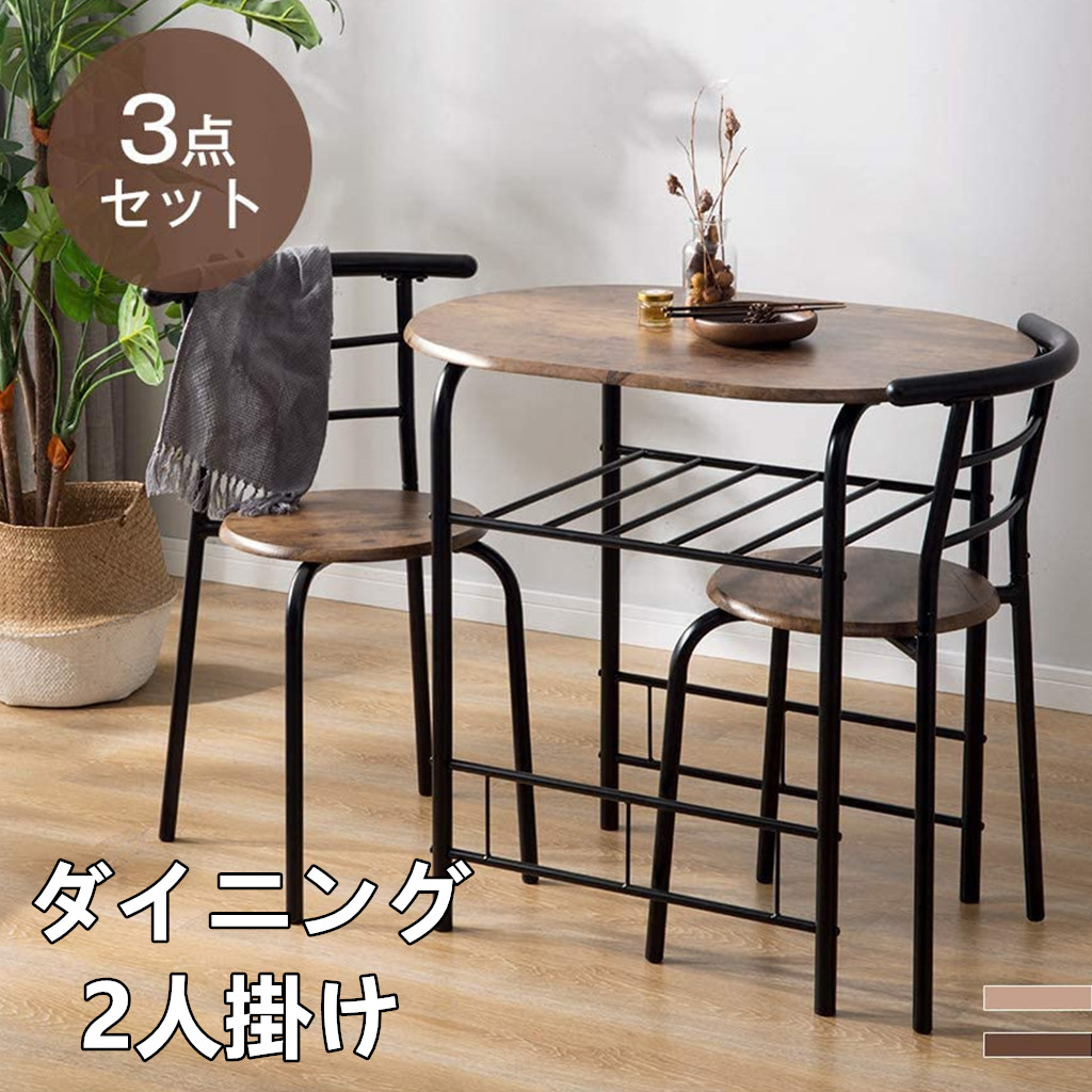 ダイニングテーブル 円形 ダイニング 3点セット 2人掛け チェア2脚 コンパクトサイズ おしゃれ 木目調 コンパクト 多機能 北欧 食卓テーブル ダイニングセット