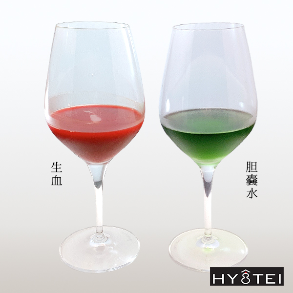 ※活き血は血液凝固を防ぐため、りんごジュースで割っています(国産有機りんご使用)