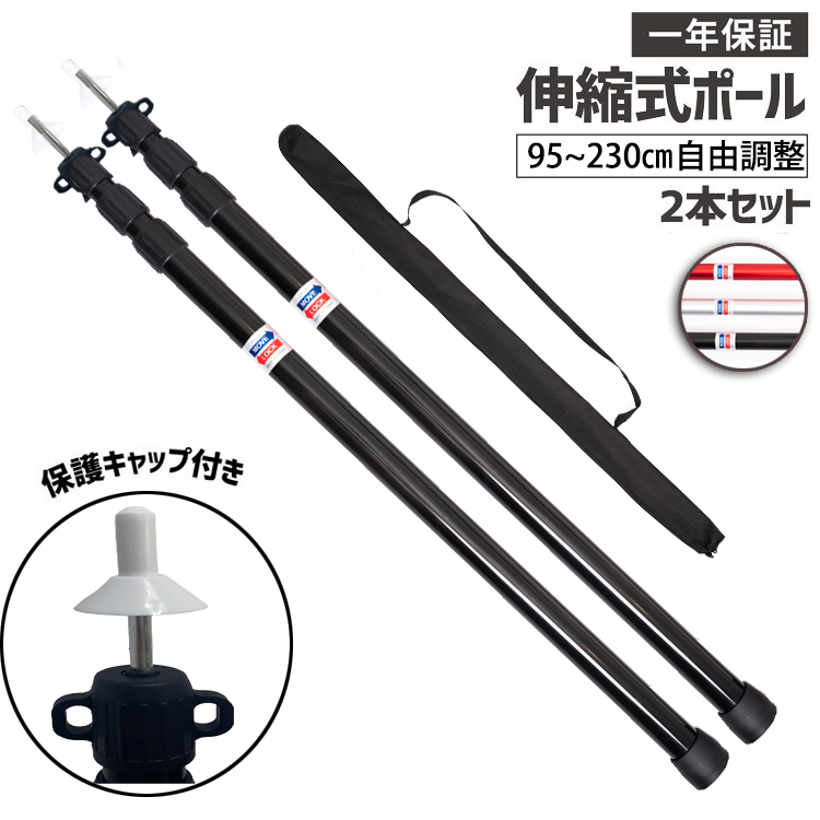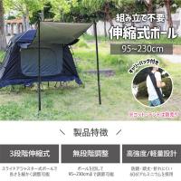 【簡単調整&伸縮】長さ調節:95cm〜230cm。ポールは最大45kgのものを支えます。タープ、テント、キャノピー、日よけシェルター、キャンピングカーなどでスライド式ポールを最適な長さに調整でき、しっかりロックされます。