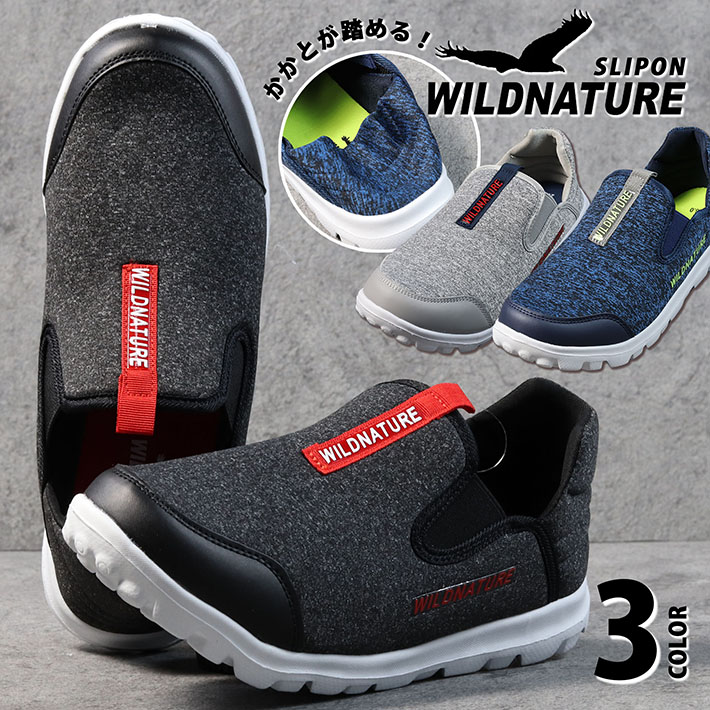 スリッポン スニーカー シューズ メンズ 靴 2way サンダル スリッパ Y_KO 1240 ★REV 7987117 WILDNATURE かかとが踏める 超軽量 グレー ネイビー ブラック 黒