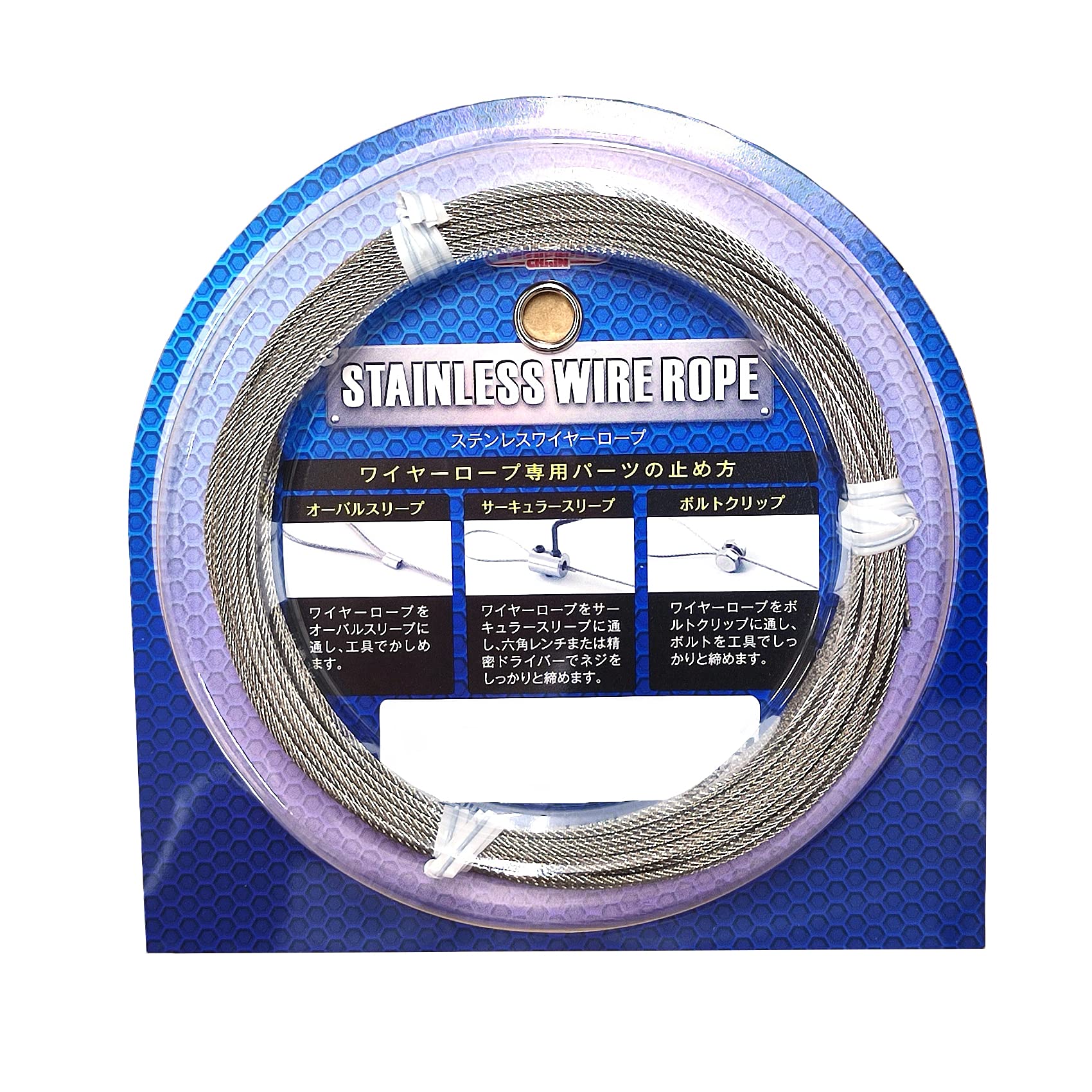 商品名:ニッサチェイン ステンレスワイヤーロープ 1.00× 5m 参考使用荷重30kg Y-109