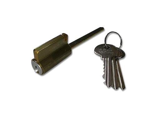 6本ピンシリンダーを装着したユーシンショウワ社516外開タイプの取替用シリンダーです。 子鍵は3本ついております。