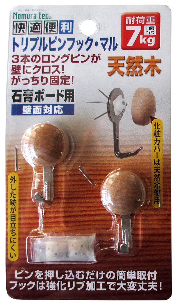 商品名:ノムラテック 快適便利 トリプルピンフック・マル 2個入・白 N-3306