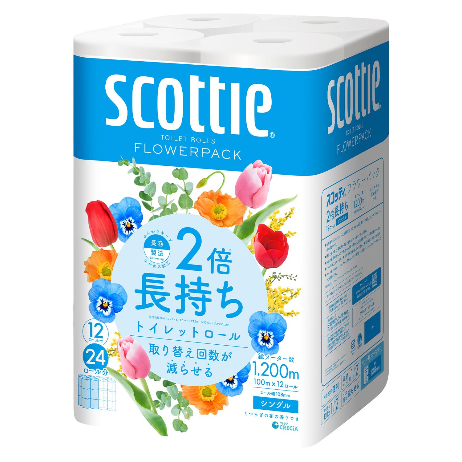商品名:日本製紙クレシア スコッティ トイレットペーパー フラワーパック 2倍長持ち 12ロール(シングル) 12ロール×4パック