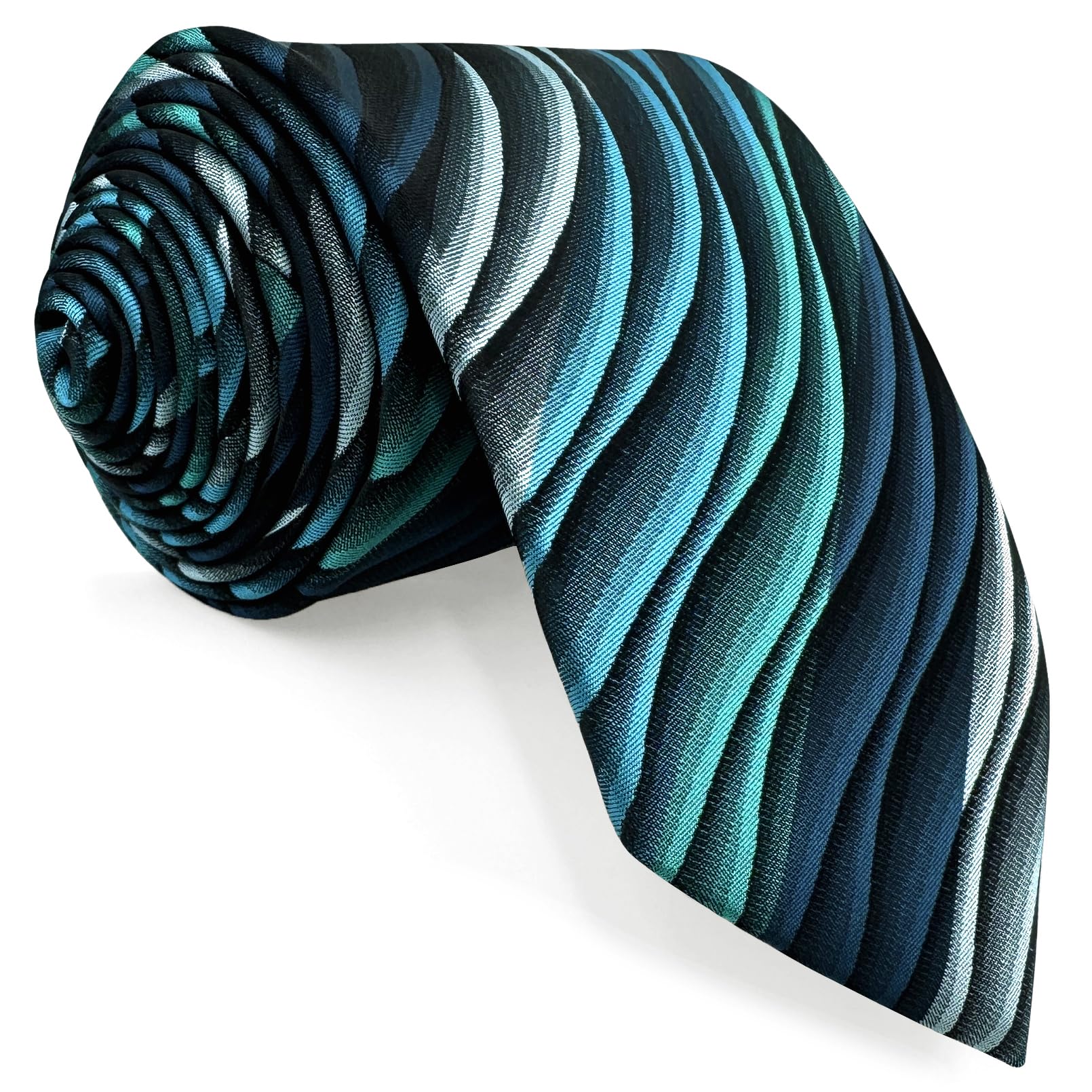 SHLAX&WING メンズ ネクタイ ウェーブ 青い 花柄 シルク グリーン 147cm