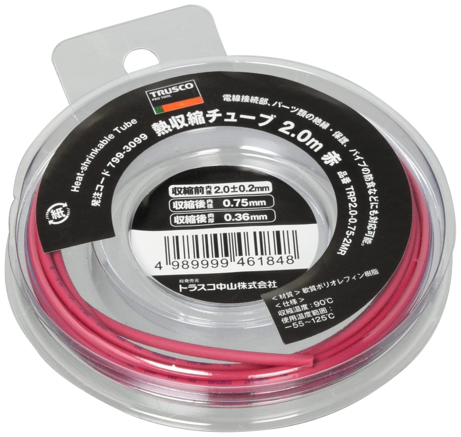 商品名:TRUSCO(トラスコ) 熱収縮チューブ 収縮率2:1 赤 TRP2.00.752MR