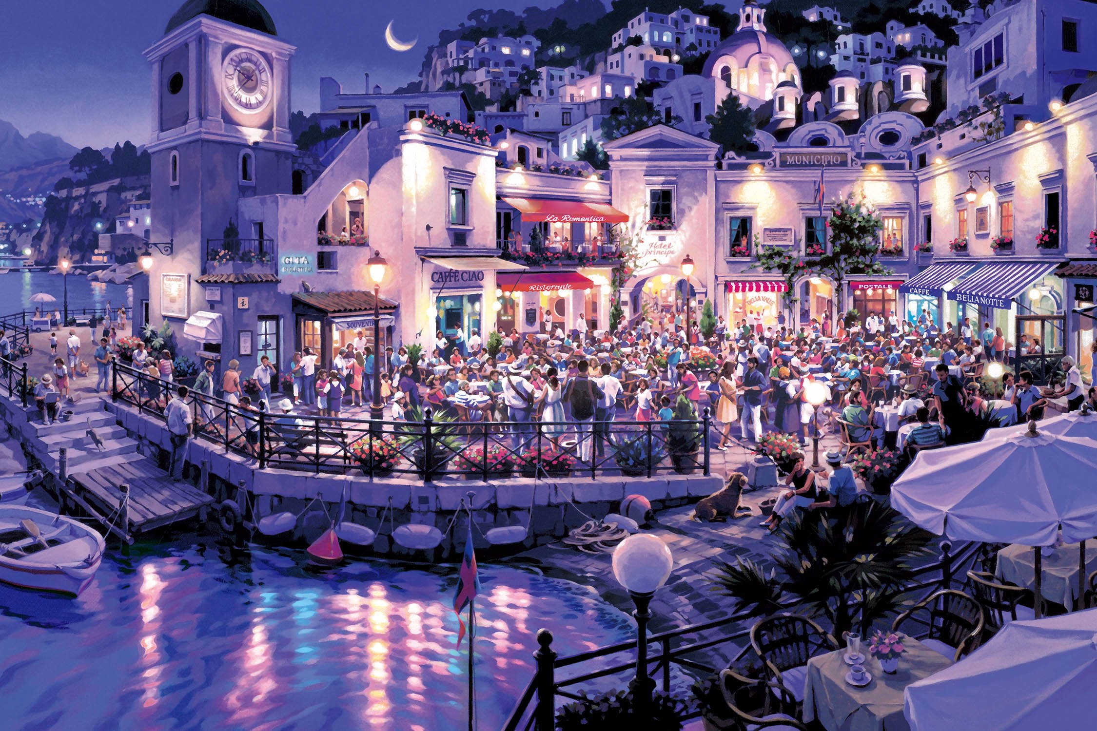 商品名:エポック社 2016ベリースモールピース ジグソーパズル イラスト/アート 笹倉鉄平 カフェ・ベラ・ノッテ (50×75cm) 23-713 のり付き ヘラ付き 点数券付き EPOCH