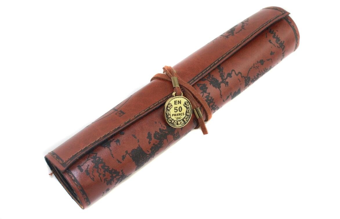商品名:naissant ペンケース ロール 型 紐 ペンケース 収納 ケース 文具 筆記用具 筆記具 道具 入れ 巻き 筆 革 巻 巻物 型 文房具 (ブラウン)