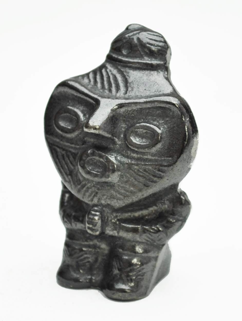 青森県八戸市の風張遺跡から出土し、国宝に指定されている土偶、合掌土偶※がモチーフになっています。 溶出する鉄分を利用し、やかんや鍋に入れて鉄分補給のほか、貝の砂出し、黒豆やなす漬けの色だしなどに古釘の代用としてお使い頂けます。 安定して直立しますので、置物やオーナメントとしてもお楽しみ頂けます。 ※体育座りで胸の前で両手を合わせるポーズが特徴です。豊穣や安産を願って作られたと考えられています。