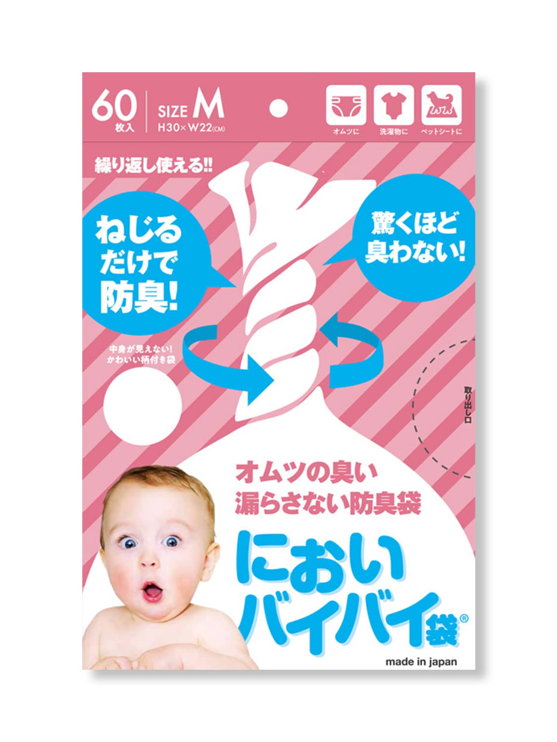 商品名:におわない袋 防臭袋 消臭袋 おむつ うんちが臭わない袋 赤ちゃん トイレ 袋 においバイバイ袋 ねじるだけ 驚くほど 臭わない 移らない 衛生的な 袋 赤ちゃん用 ゴミ袋 消臭 M サイズ 60枚入