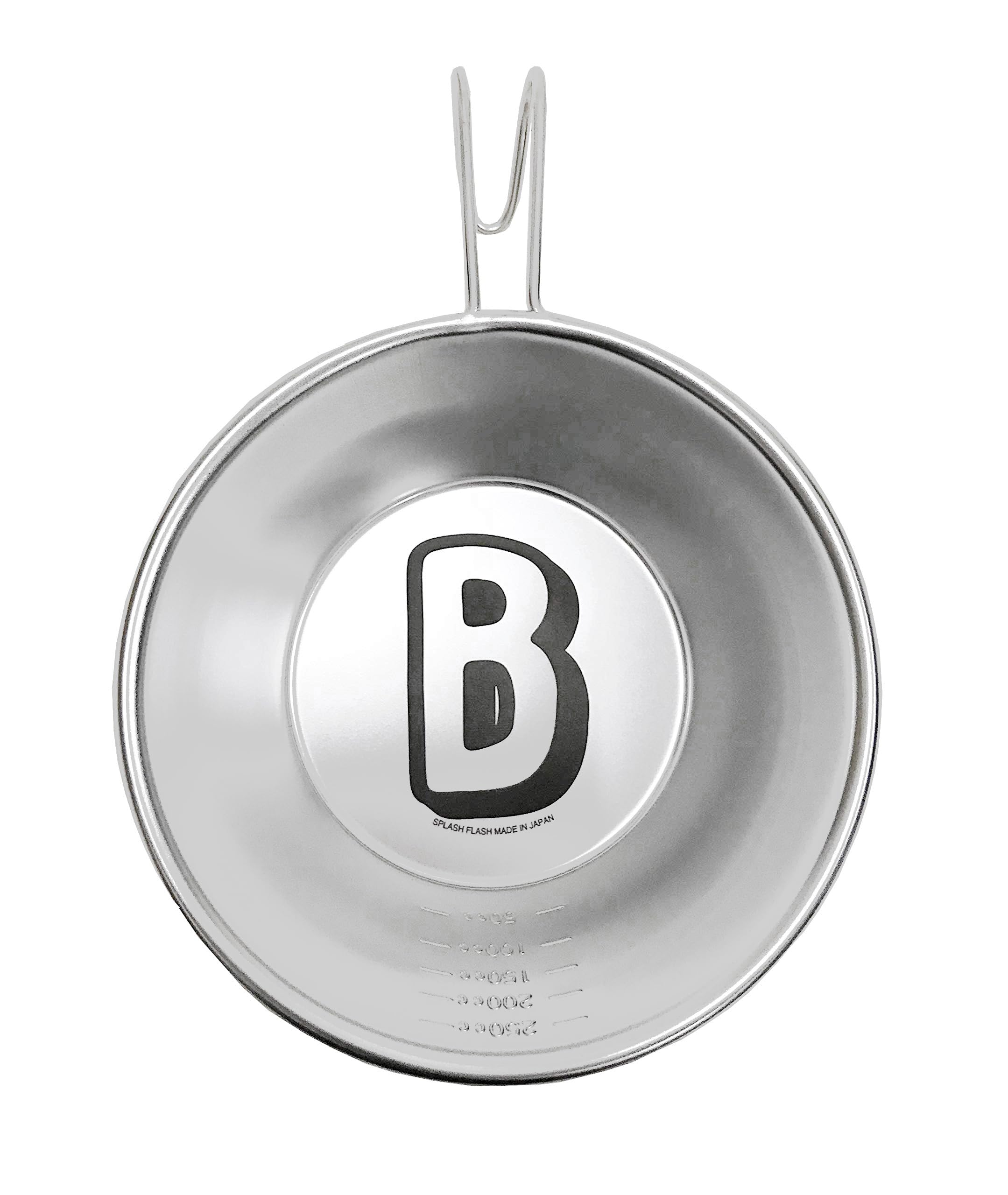 商品名:SPLASH FLASH アルファベット シェラカップ ステンレス 直火 イニシャル 目盛り付き 浅型 日本製 燕三条 (B)