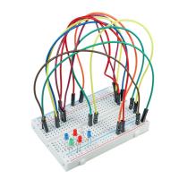 ジャンパーワイヤーをブレッドボードの穴に挿すだけで、手軽に電子回路の試作や実験ができます。