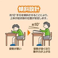 約10°手元を傾斜させることにより、上体が起き、頭の位置が安定します。パソコンを見る時や絵や文章を書くとき、読書などをする際に目線を引き上げてくれます。よい姿勢を維持しやすくなります。