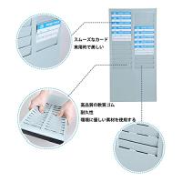 大容量24ポケット:24枚のカードを収納できます。 通常サイズのタイムカードを挿入すると、名前の部分が見えるので、カードを見つけやすくなっています。