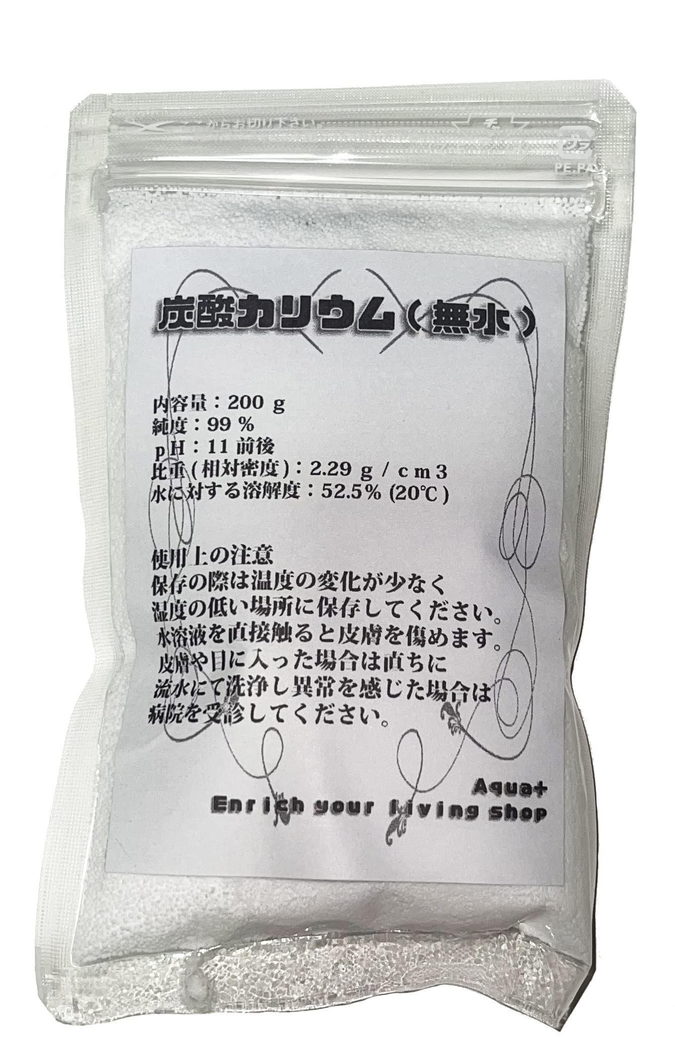 商品名:(Aqua+) 炭酸カリウム (無水) pH調整 水草 肥料 成長促進 コケ 苔の抑制 (200g)