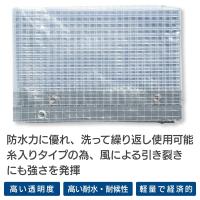 【特徴】高い透明度のビニールシートです。雨や風から荷物などを守ります。明るさを保ち、中を見通したい用途に最適です。糸入りで裂けにくく、耐水・対候性に優れているため、屋外でのご使用もおすすめです。軽量で丈夫ながら、経済的です。