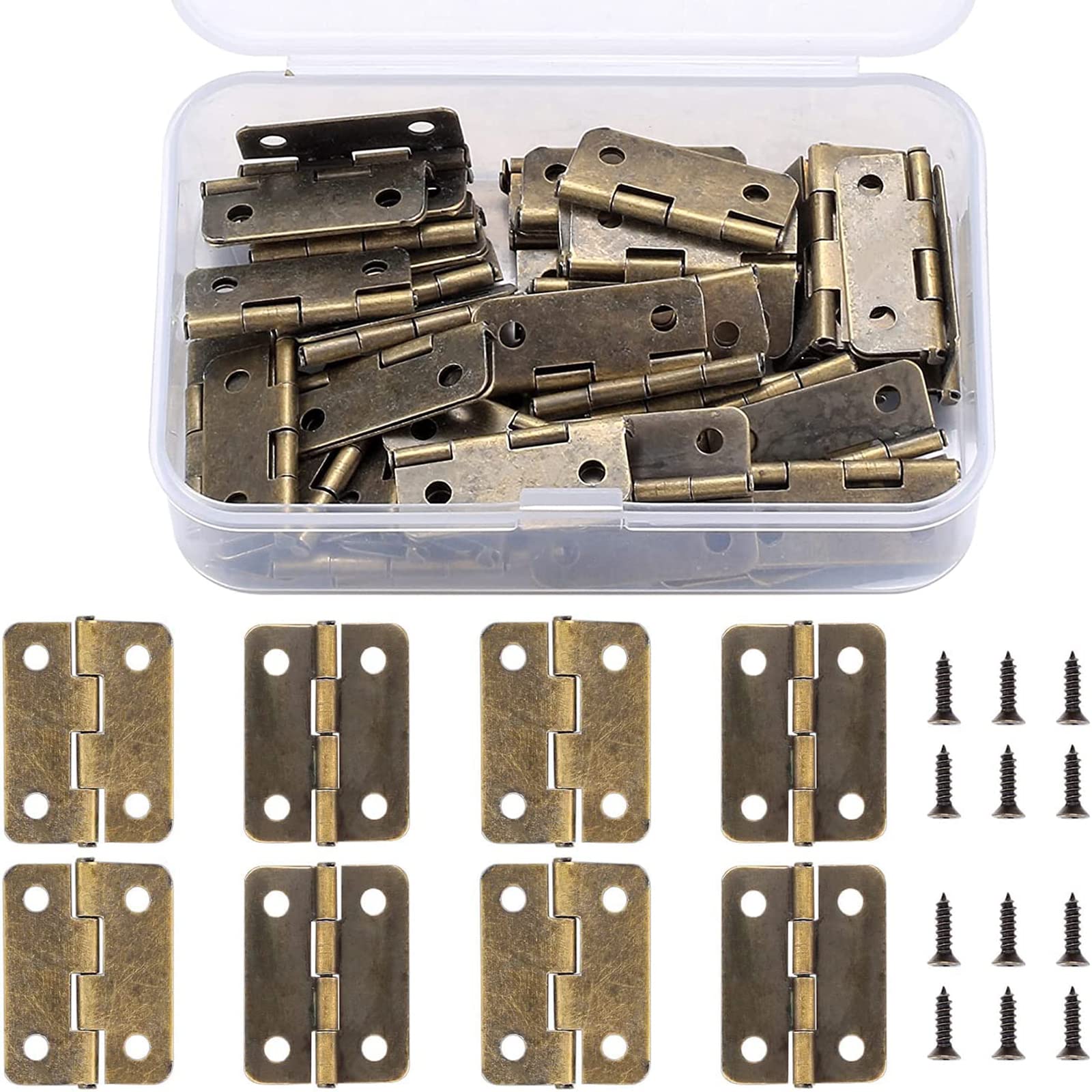 平蝶番 ヒンジ 丁番 ミニ蝶番 木箱用 4穴 50個入り ネジ付 収納ボックス付き 用金物 手芸 手作り パーツ 金具 (レトロカラー)