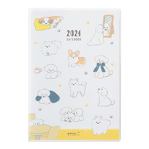ミドリ ポケットダイアリー 手帳 2024年 B6 ウィークリー イヌ柄 22255006 (2024年1月始まり)