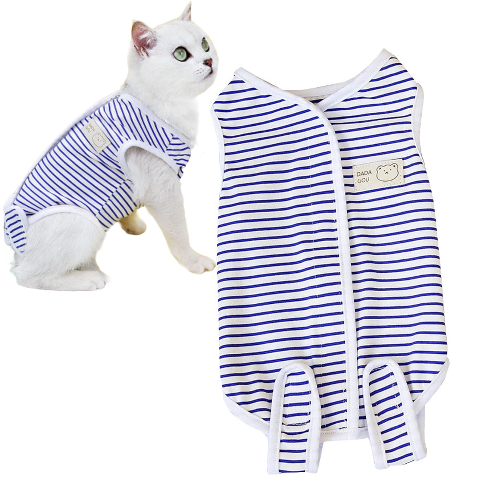 DFsucces 術後服 猫用 ペット服 産後服 離乳服 不妊手術 不妊服 傷口保護 皮膚保護 引っ掻き防止 舐め防止 (M-青)
