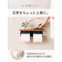 YY Hjem トイレットペーパーホルダー 2連 おしゃれ ダブル 無垢 木製 大きめペーパー入る 紙巻き器 (ウォールナット × ブラック)