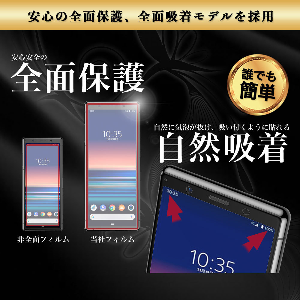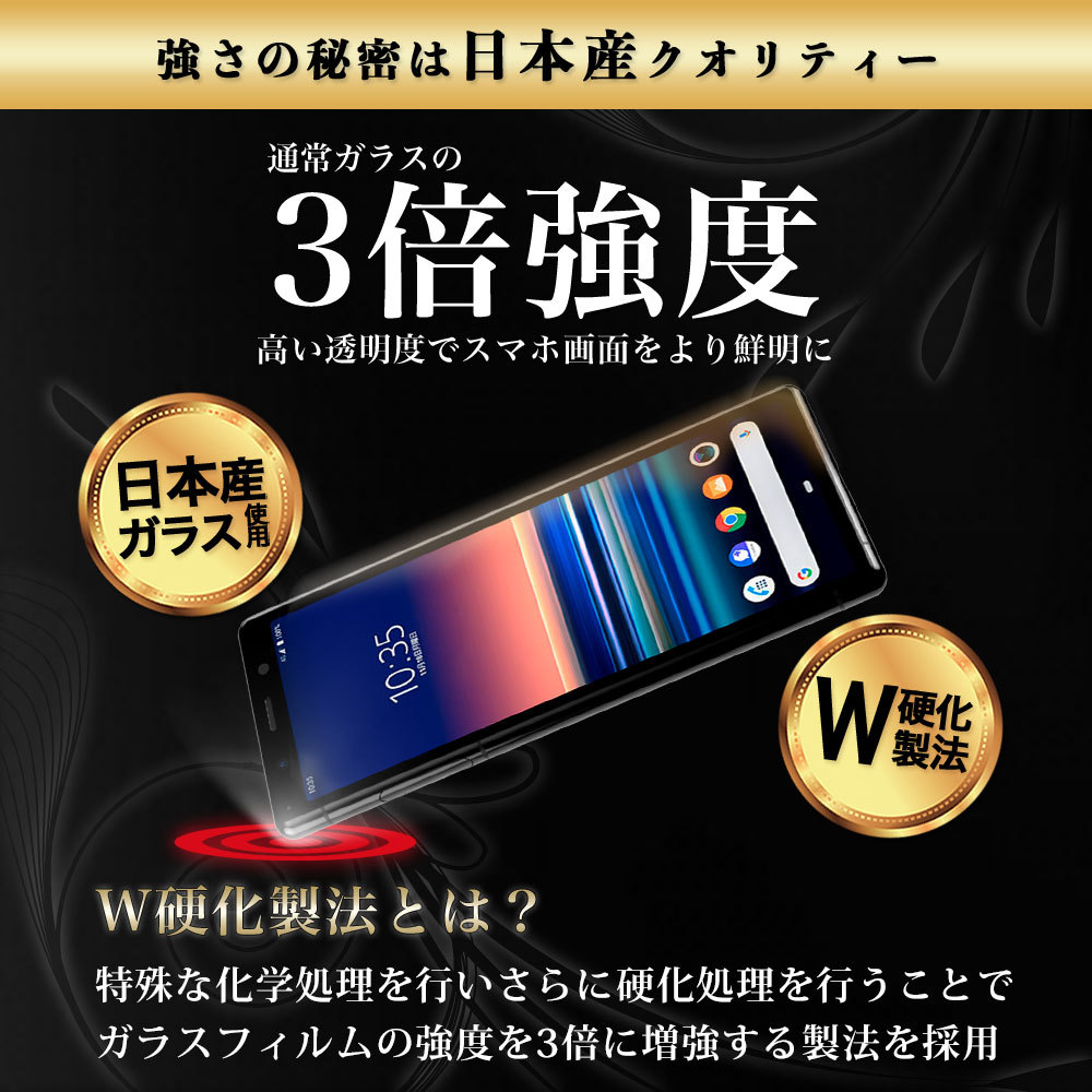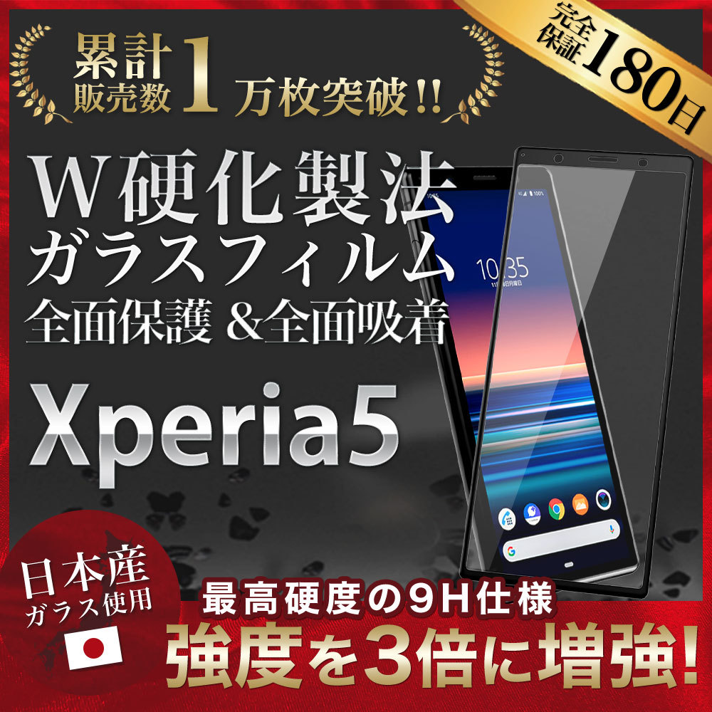 Xperia5(エクスペリア5) SO-01M SOV41 専用ガラスフィルム。全面保護・全面吸着タイプ。W硬化製法で一般のガラスフィルムの3倍の強度。180日完全保証付きです。
